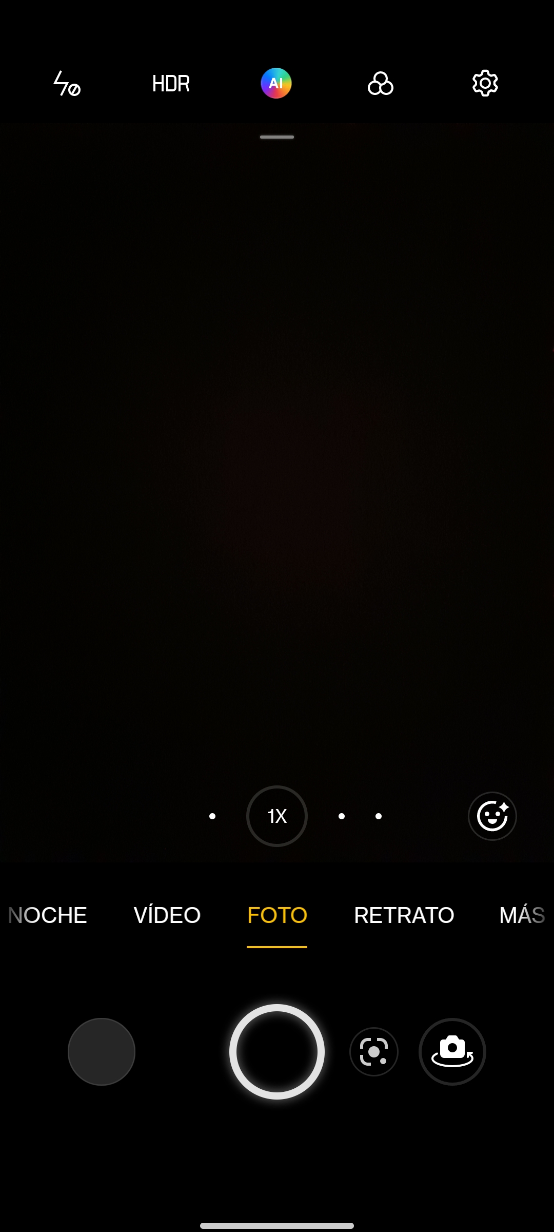 En la parte superior de la interfaz contamos con las opciones de activación y desactivación del flash, el HDR, y en la parte derecha el icono de configuración a través del cual podemos elegir la marca de agua, utilizar los botones de volumen a modo de obturador, o incluir la información de ubicación en la imagen o el vídeo.