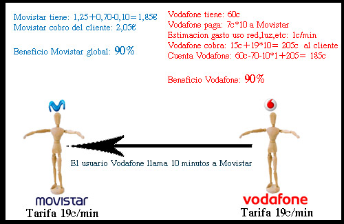 de Vodafone que se llaman entre sí a 19ctms./minuto + 15ctms. de