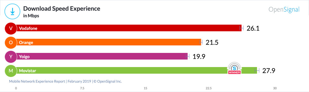 Para las cuatro grandes operadoras españolas con red propia (Movistar, Vodafone, Orange y Yoigo), en los tres primeros apartados la ganadora es Vodafone, mientras que en los dos últimos la mejor experiencia la proporciona Movistar, con Orange y Yoigo en un discreto segundo plano sin ganar en ninguno de los apartados.
