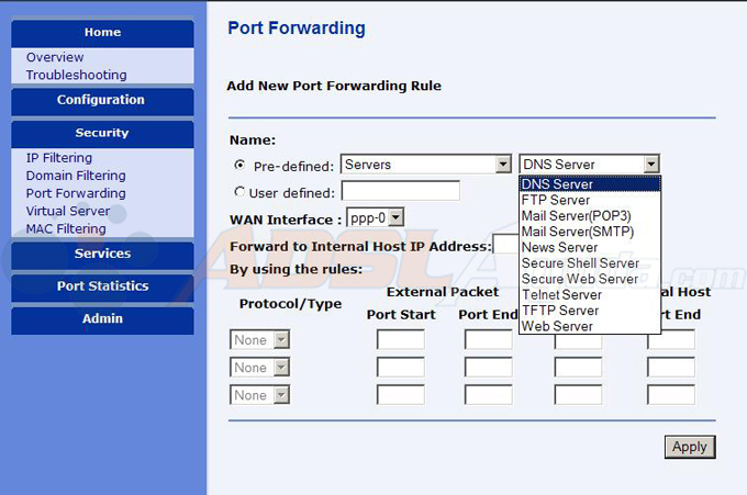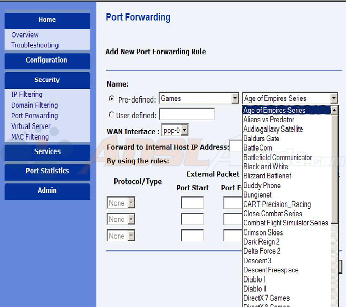 En caso de las opciones preconfiguradas del router para apertura de puertos hay estas opciones para juegos ya predefinidos