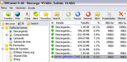 También he probado con un cliente de la red bittorrent, BitComet, funcionando también muy bien y con estabilidad total.