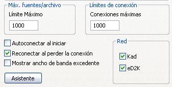 Los parámetros con los que he programado eMule para la prueba son extremos: