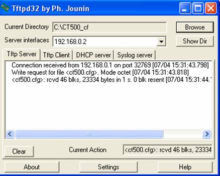 Independientemente del tipo de acceso al módem/router que hayamos utilizado (consola, TELNET o WEB), el programa servidor TFTP del ordenador nos mostrará el buen resultado de la operación con estos mensajes: