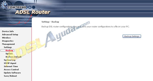 Clicamos Backup Settings y nos dara la opcion de guardar el archivo de la configuracion: