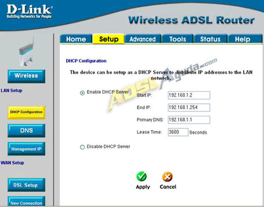 Vamos al menú Setup –> DHCP Configuration –> Marcar la opción que nos interese: Enable (activado) o Disable (desactivado).