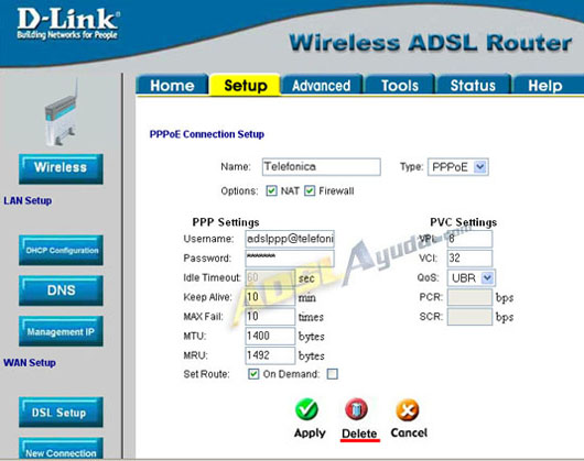Si tenemos una conexión anterior, la eliminamos: En Setup -> entramos en la conexión a borrar -> y pulsamos Delete.
