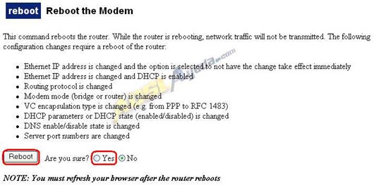 Esta operación requiere reiniciar el router para que sea efectiva. Pulsamos en REBOOT REQUIRED, que nos llevará a una pantalla de confirmación en la que se explican los casos en los que es necesario hacer un Reboot al router.