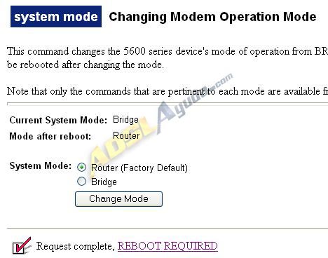 Seleccionamos en System Mode la opción Router, pulsamos en Change Mode y continuamos hasta el Reboot del router.