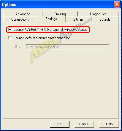 Pulsamos el botón Options. Aparecerán varias opciones de configuración. Seleccionamos la pestaña Settings y marcamos la casilla: Launch WinPoET v6.0 Manager at Windows startup. De esta manera nos aseguramos que el programa se ejecute al iniciar windows.