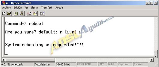 Terminaremos con el comando reboot, para reiniciar el router y que active correctamente todos los valores introducidos.