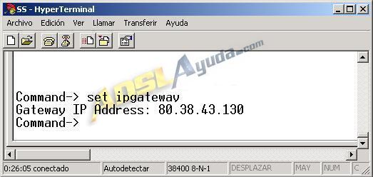 A continuación introducimos el valor de la puerta de enlace remota mediante el comando set ipgateway: