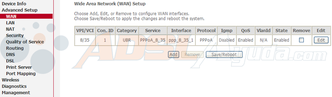 - La configuración de la conexión en el apartado Advanced Setup -> WAN: