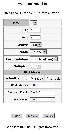Ahora seleccionaremos RFC2684(IPoA) en el campo Encapsulation.