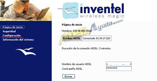 Entraremos a la página de inicio de router. Debemos ir al apartado Configuración.