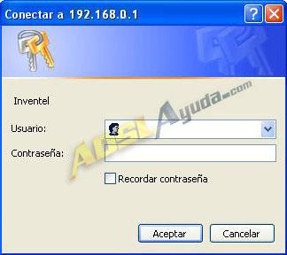 Introducimos en el navegador la dirección de nuestra puerta de enlace, por defecto 192.168.0.1. (en alguna ocasión puede ser 10.0.0.1).