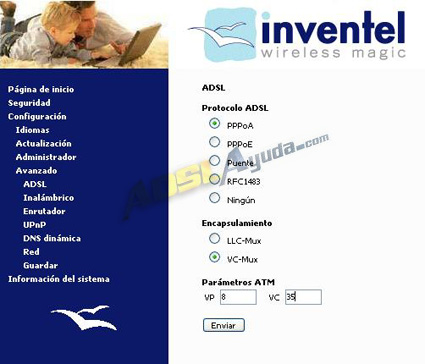 Ahora pulsaremos en la opción Configuración del menú de la izquierda, lo que hará que se abran más opciones. Debemos ir aAvanzado y después a ADSL.