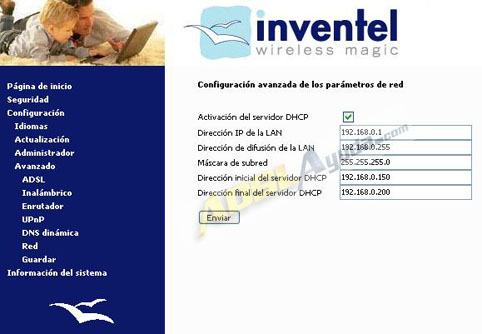 - Dirección inicial del servidor DHCP: La dirección IP que le asignará al primer ordenador que se la solicite.