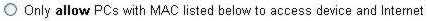 (Permitir el acceso a los PC con direcciones MAC que aparecen a continuación), luego pulsamos click en ![]()