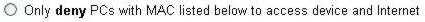 (Denegar el acceso a los PC con direcciones MAC que aparecen a continuación), luego pulsamos click en