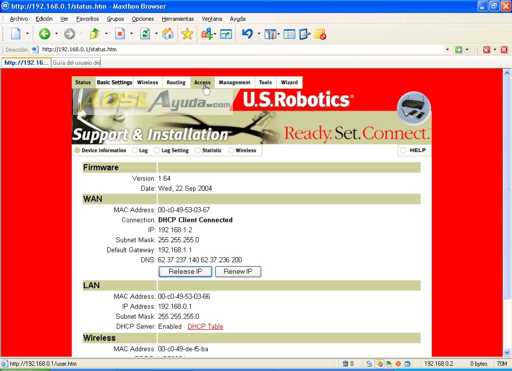 Nos saldrá una pantalla de información donde nos indica la configuración actual de la WAN, LAN y Wireless. Ahora vamos al DNZ, pulsamos click en