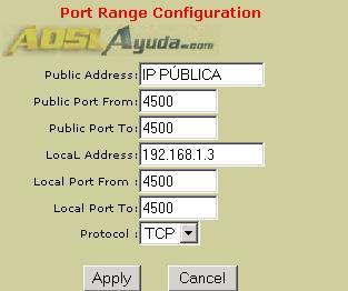 Local Port From: El puerto (el que va al PC) inicial del rango que queremos abrir.