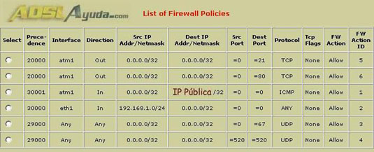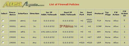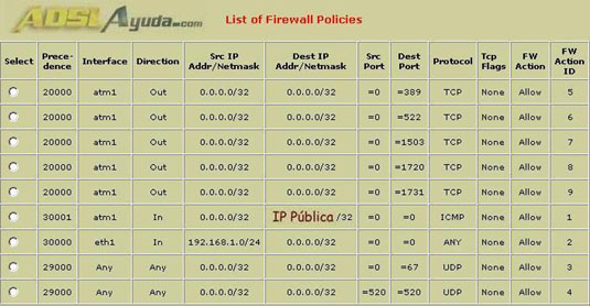 Las reglas (FW Action ID) 1, 2, 3 y 4 las pone el router por defecto. FW Action ID no es más que el número de orden en el que se añade una regla.