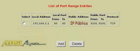 Con esto, desde cualquier parte y poniendo en el navegador nuestra_ip_publica:8181, podremos acceder a la configuración del router. En el ejemplo se ha puesto el puerto 8181 por no ser tan evidente como el 80. Podríamos habilitar otro distinto por motivos de seguridad. (si ponemos el 80, cualquiera que ponga nuestra ip pública abrirá la página de acceso del router).