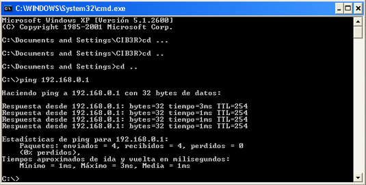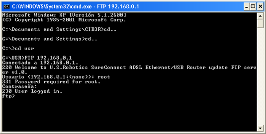 5. Desde la consola de DOS vaya al directorio donde guardo el contenido del fichero zip, escriba: «cd C:USR» (o como quiera que haya llamado al fichero).