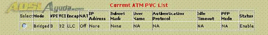 Tenemos que poner el VPI 8 VCI 32 y marcar modo bridge. Quitamos el NAT y el DHCP. Yo he quitado el DHCP y he puesto en mi tarjeta ethernet la dirección fija 192.168.1.3. No he probado esta configuración con el DHCP habilitado.
