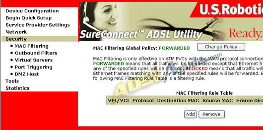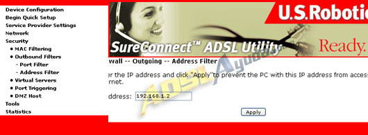 Vamos al submenú Outbound Filter, escogemos la opción Address filter y se nos abrirá la siguiente pantalla.