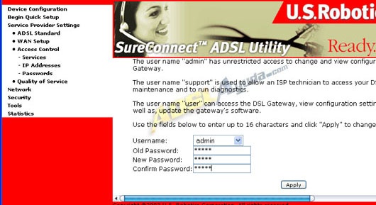 CAMBIO DE PASSWORD. ROUTER US ROBOTICS 9105
