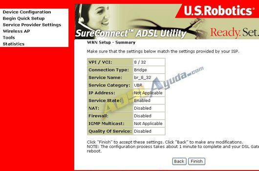 En esta pantalla nos pide confirmación para los valores de la red Wireless (sólo para el 9106). Configuramos según nuestros gustos y pulsamos en Next.
