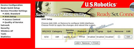 Si tenemos una configuración existente, la mejor opción es borrarla para así partir de 0.En este caso deberíamos ir al menú Service Provider Settings, WAN Setup.