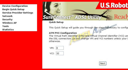 - VPI: 8, VCI: 32. Pulsamos en la tecla Next.