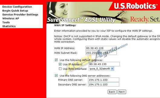 Las casillas Start IP Address, End IP Address son para indicarle al router qué direcciones IP deberá asignar a los ordenadores que lo soliciten. Pulsamos en el botón Next.