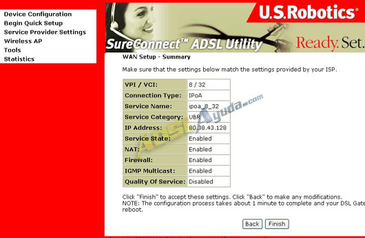 La última pantalla de configuración es el resumen de datos que hemos introducido. Para confirmar todo lo anterior, pulsaremos en el botón Finish.