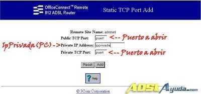 Ahora vamos a explicar de forma sencilla y rápida como mapear puertos en el 3com812 a través de su web de configuración.