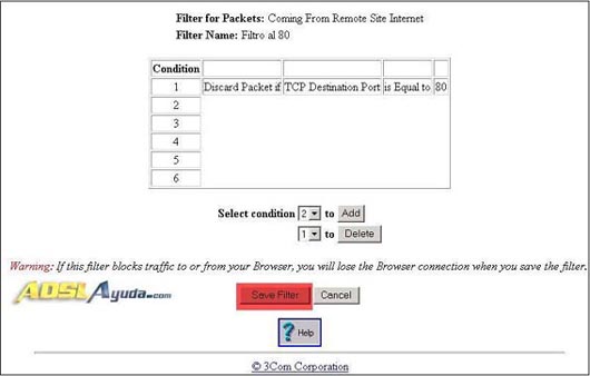 Para ilustrar esto, voy a poner la configuración del filtro que ponía concretamente ya.com en sus routers 3com 812.