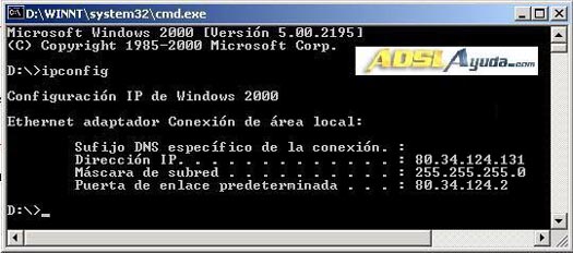 Abriremos una ventana de ms-dos (Inicio -> Ejecutar -> command en win 98) (Inicio -> Ejecutar -> cmd en win 2000 / xp) y ejecutaremos el comandowinipcfg para windows 98 o ipconfig para windows 2000 / xp.
