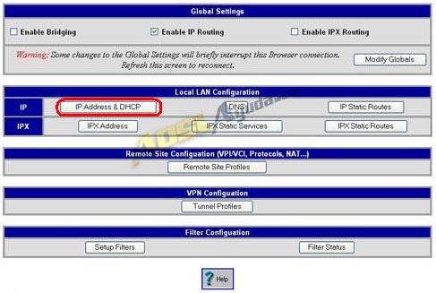 Siguiente paso: Iremos a Configuration y dentro del apartado Local LAN Configuration, pulsamos en el botón IP Address & DHCP.