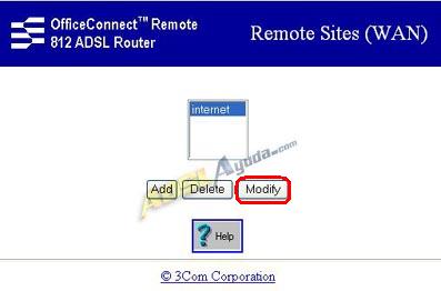 Aquí elegimos el canal virtual que tengamos en uso. Normalmente sólo tendremos uno, y además se llamará internet. Pulsamos el botón Modify y accederemos a la primera pantalla de configuración del mismo. En ella no es necesario que realicemos ningún cambio.