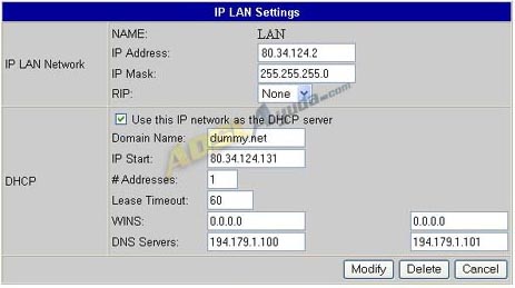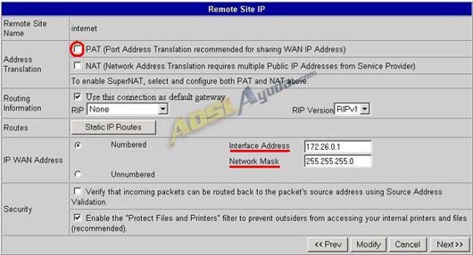 Luego debemos ir al apartado IP WAN Address e introduciremos en la casilla Interface Address nuestra IP Pública y en Network Mask la máscara de red Pública. Estos datos debemos conocerlos. Una vez cambiados estos valores, pulsamos el botón Modify.