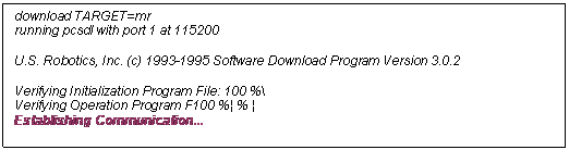 En este punto, empezará la transferencia del firmware MR0X0Y0Z.NAC a la memoria flash del módem/router (EEPROM) a una velocidad de 115.000 bps por el puerto serie COM1 del ordenador.