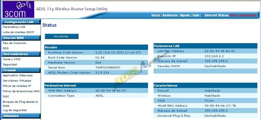 Por último, nos muestra la pantalla de configuración, con todos los datos del estado actual del router.