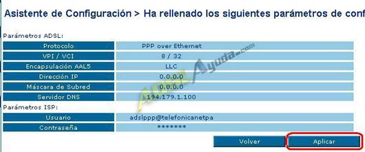 Pasamos a otra pantalla en la que nos muestra un resumen de los datos que hemos introducido, pulsamos en Aplicar.
