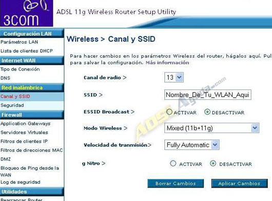 3COM Wireless 11g. Configuración inalámbrica