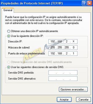 Dirección IP: IP privada de tu tarjeta de red. Por defecto, puede ser una IP comprendida entre 192.168.2.2 y 192.168.2.100.