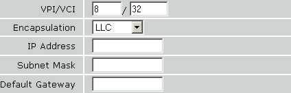 A continuación configuramos los demás datos VPI/VCI que ya vienen configurado por defecto en 8/32, el Encapsulamiento también viene por defecto LLC y por último la Dirección IP, Submascara de red y Puerta de enlace públicas, estos datos no lo manda nuestro ISP en una carta de bienvenida.