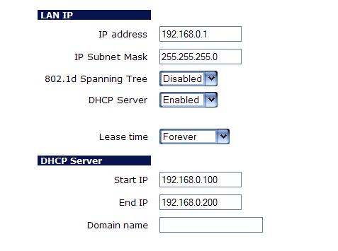 Tendremos 2 zonas bien diferenciadas, LAN IP y DHCP Server.
