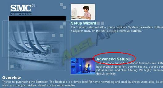 Introduciremos la contraseña. Si no la hemos cambiado será contraseña: smcadmin. Pasaremos a la pantalla de bienvenida e iremos al apartado Advanced Setup.